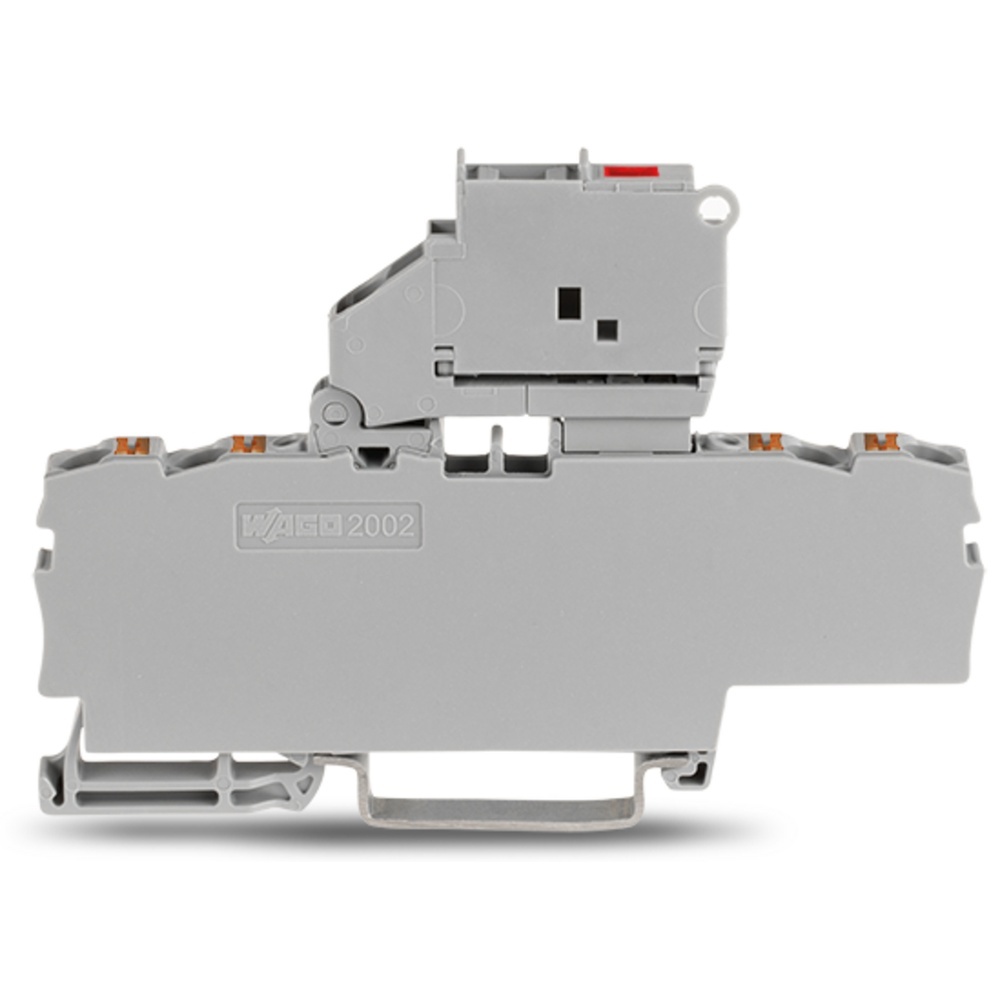 Wago Sicherungsklemme 2202-1811/1000-541 4-Leiter-Sicherungsklemme,mit schwenkbarem Sicherungshalter,mit Abschlussplatte,grau 4-Leiter-Sicherungsklemme, mit schwenkbarem Sicherungshalter, mit Abschlussplatte, für G-Sicherungseinsatz 5x20 mm, mit Drücker, mit Defektanzeige durch LED, 12-30 V, für Tragschiene 35x15 und 35x7,5, 2,5 mm², Push-in CAGE CLAMP , 2,50 mm², grau Hersteller Wago Nr. 220218111000541 EAN Nr. 4066966334067 Warengruppe WAGO Reihenklemmen
