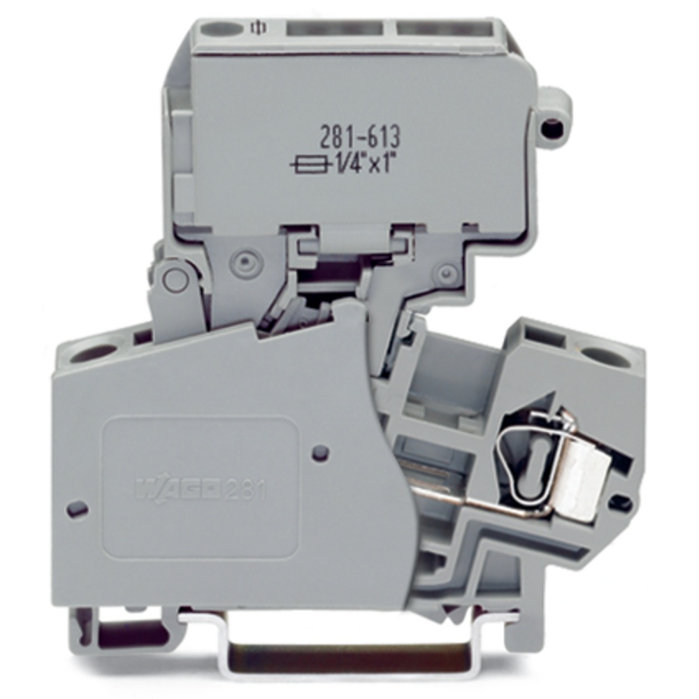 Wago Sicherungsklemme 281-623 Sicherungsklemme mit schwenkbarem Sicherungshalter für G-Sicherungseinsatz ¼'x1¼' ohne Defektanzeige grau Wago Serie 281 EAN Nr. 4045454620684 Warengruppe WAGO Reihenklemmen