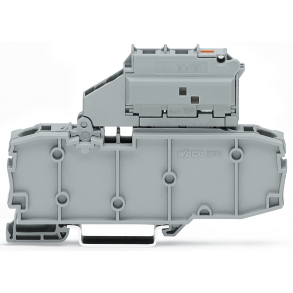 Wago Sicherungsstecker 2006-1631/1099-867 Sicherungsklemme mit schwenkbarem Sicherungshalter und Abschlussplatte für G-Sicherungseinsatz 1/4'x11/4' 120 V mit Defektanzeige durch LED grau Hersteller WAGO Serie 2006 EAN Nr. 4050821213321 Warengruppe WAGO TopJob S Klemmen