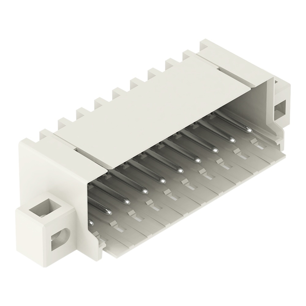 Wago Stiftleiste 2091-1430/205-000 Stiftleiste mit abgewinkelten Lötstiften und Befestigungsflanschen 10-polig Rastermaß 3,5 mm/0.138 in lichtgrau Wago Serie 2091 EAN Nr. 4050821412069 Warengruppe WAGO Picomax