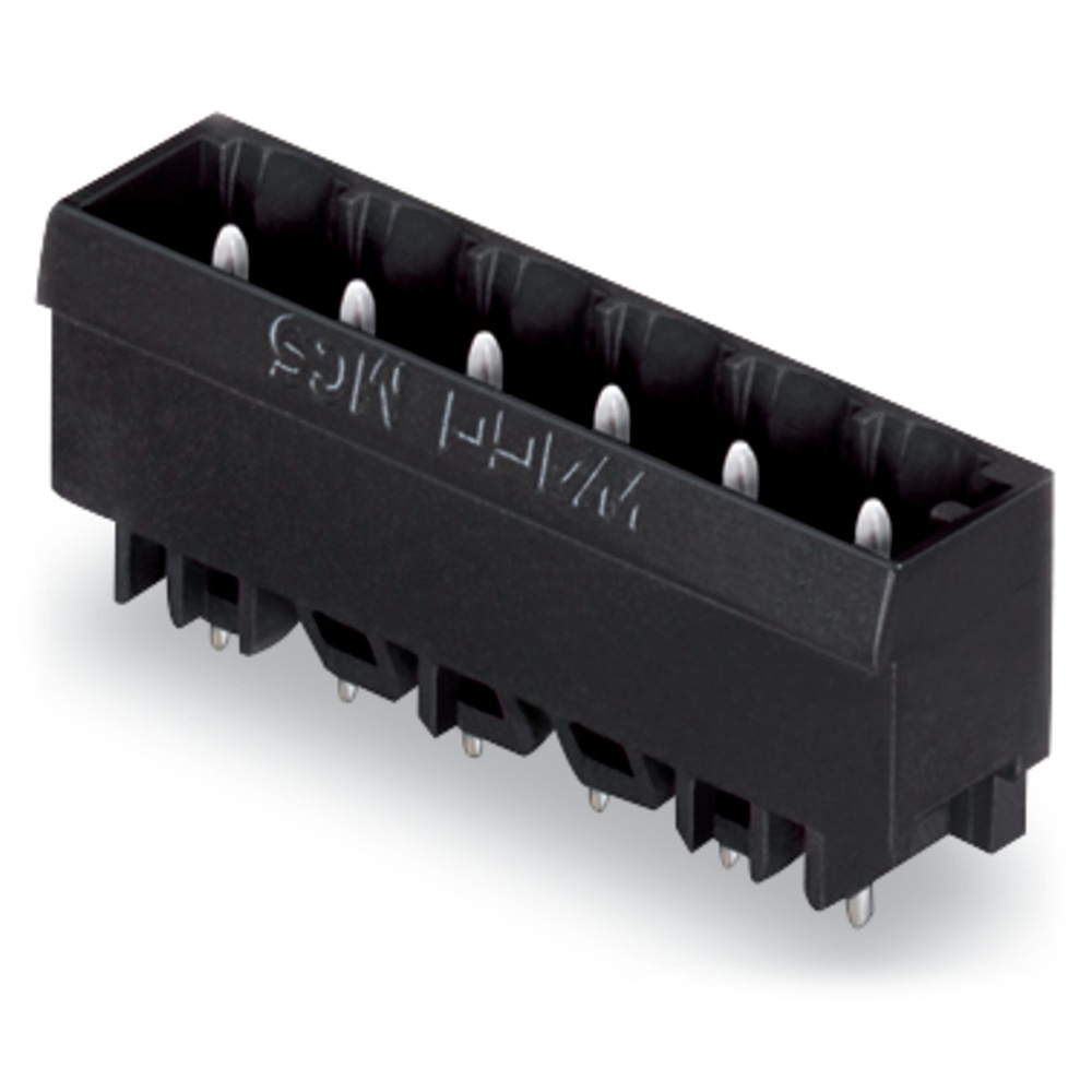 Wago Stiftleiste 231-166/001-000/105-604 THR-Stiftleiste,Lötstift 1,2x1,2 mm,gerade,schwarz THR-Stiftleiste, Lötstift 1,2x1,2 mm, gerade, Rastermaß 5 mm, 6-polig, schwarz THR-Stiftleisten zur Verarbeitung im „Reflow“-Lötprozess in der SMT-Fertigung „Tape-and-Reel“-Verpackungen für die automatische Bestückung der Komponenten auf die Leiterplatte Zulässiger Nennstrom von 16 A und erhöhte Stabilität insbesondere bei kleineren Polzahlen durch Stiftquerschnitt 1,2x1,2 mm Verpackung als Stückgut für die Handbestückung Steckverbindung rechtwinklig oder parallel zur Leiterplatte Kodierbar Hersteller Wago Nr. 231166001000105000 EAN Nr. 4045454000295 Warengruppe WAGO Multistecksystem