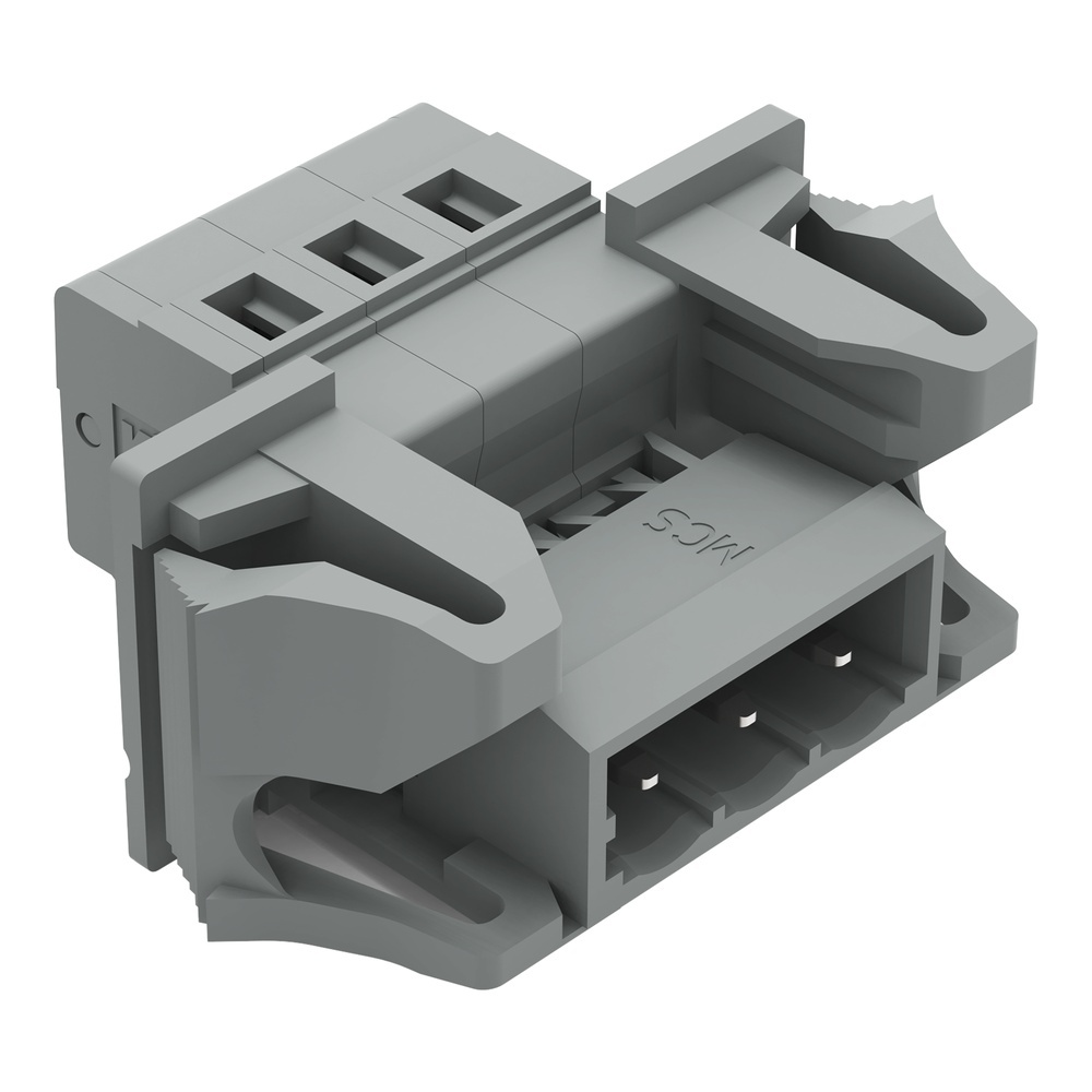 Wago Stiftleiste 231-603/114-000 Stiftleiste mit Snap-In-Flanschen für Durchführungsanwendungen mit Blechdicken von 0,5 bis 2,5 mm 3-polig Rastermaß 5 mm/0.197 in grau Hersteller WAGO Serie 231 EAN Nr. 4050821216018 Warengruppe WAGO Multistecksystem