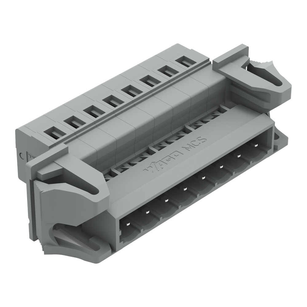 Wago Stiftleiste 231-608/114-000 Stiftleiste mit Snap-In-Flanschen für Durchführungsanwendungen mit Blechdicken von 0,5 bis 2,5 mm 8-polig Rastermaß 5 mm/0.197 in grau Hersteller WAGO Serie 231 EAN Nr. 4050821216063 Warengruppe WAGO Multistecksystem