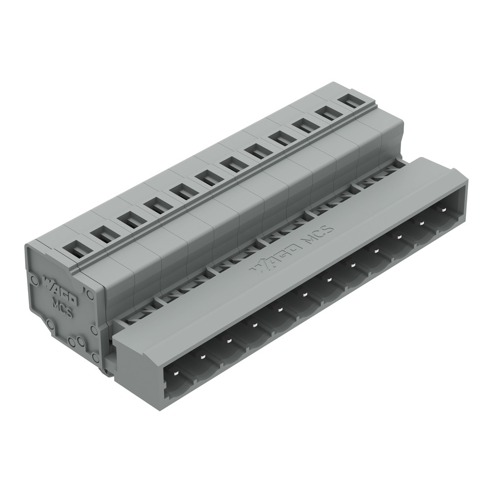 Wago Stiftleiste 231-612/018-000 Stiftleiste mit Rastfüßen 12-polig Rastermaß 5 mm/0.197 in mit Montageadapter 209-137 auch auf TS 35 Blechdicke 0,6x1,2 mm Befestigungslöcher Ø 3,5 mm grau Wago Serie 231 EAN Nr. 4044918258340 Warengruppe WAGO Multistecksystem