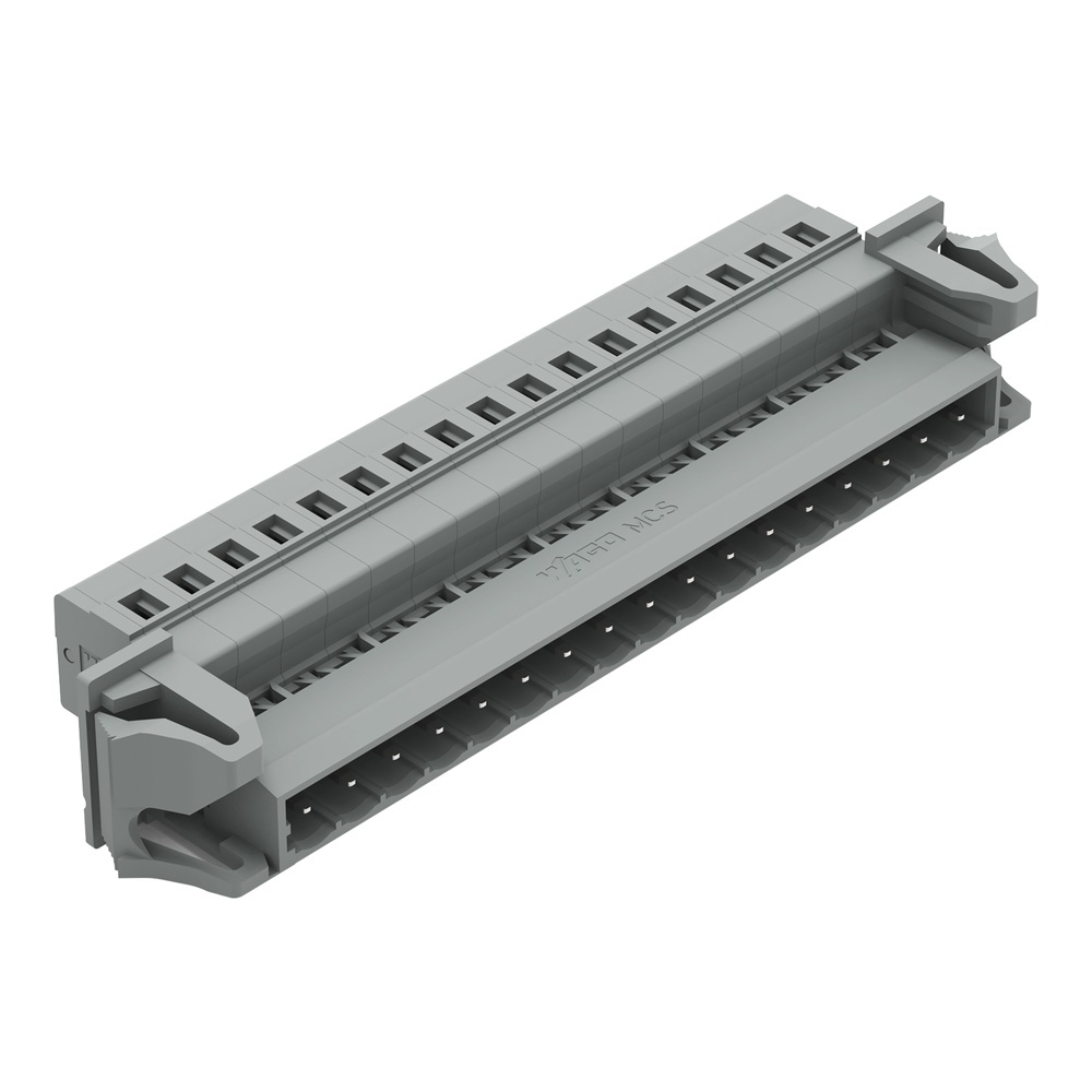 Wago Stiftleiste 231-617/114-000 Stiftleiste mit Snap-In-Flanschen für Durchführungsanwendungen mit Blechdicken von 0,5 bis 2,5 mm 17-polig Rastermaß 5 mm/0.197 in grau Hersteller WAGO Serie 231 EAN Nr. 4050821216155 Warengruppe WAGO Multistecksystem