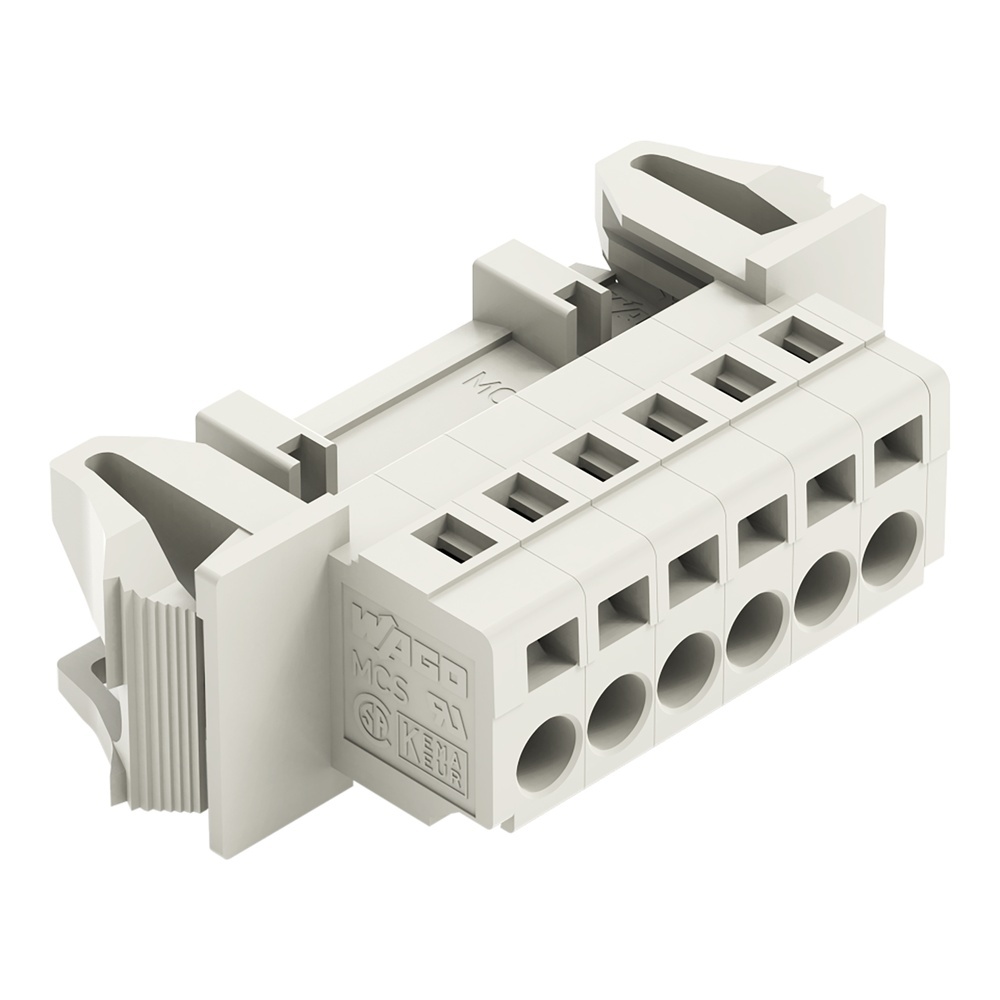 Wago Stiftleiste 721-606/114-000 Stiftleiste mit Snap-In-Flanschen für Durchführungsanwendungen mit Blechdicken von 0,5 bis 2,5 mm 6-polig Rastermaß 5 mm/0.197 in 100 % fehlsteckgeschützt ohne voreilenden PE-Kontakt lichtgrau Hersteller WAGO Serie 721 EAN Nr. 4050821280279 Warengruppe WAGO Multistecksystem