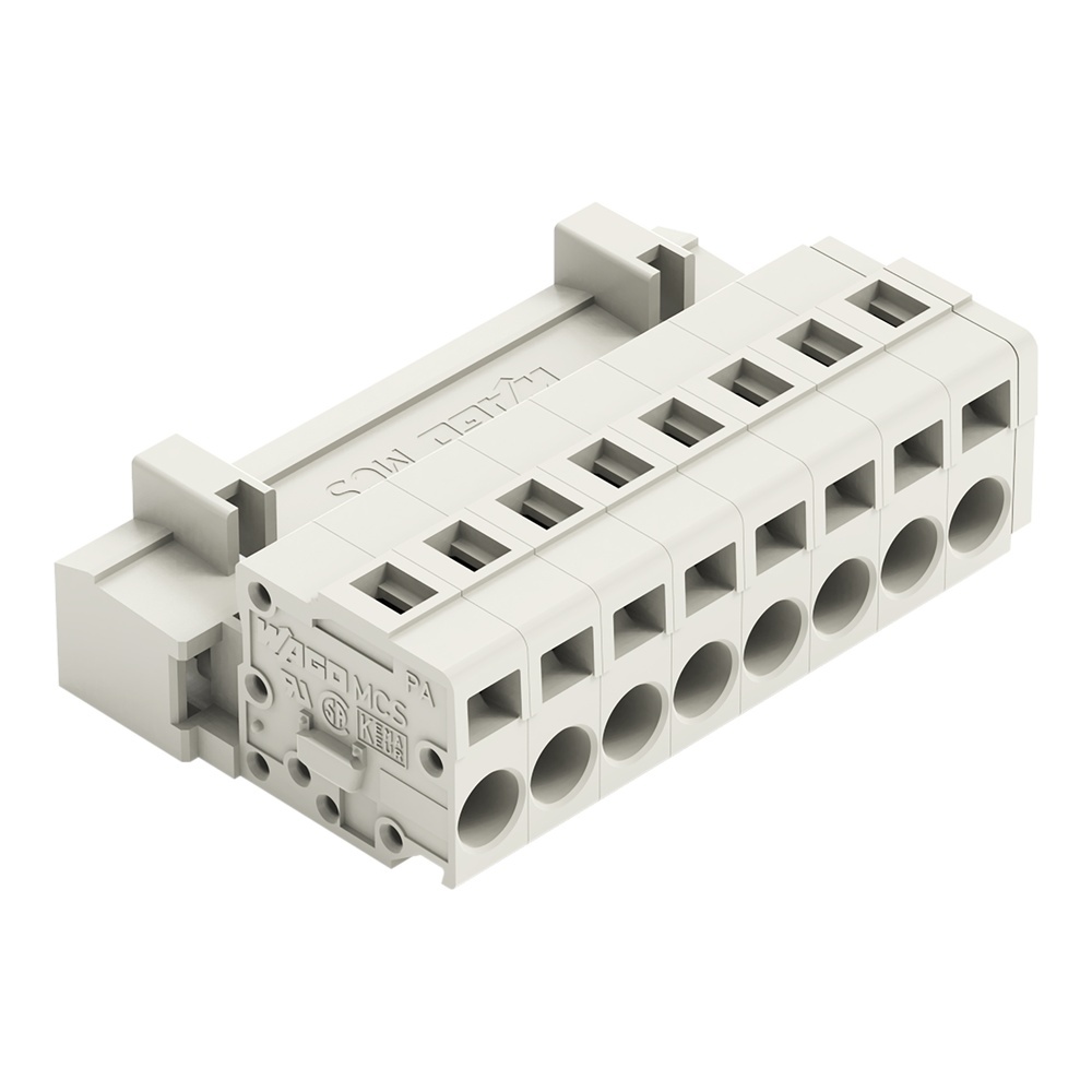 Wago Stiftleiste 721-608 Stiftleiste 8-polig Rastermaß 5 mm/0.197 in 100 % fehlsteckgeschützt ohne voreilenden PE-Kontakt lichtgrau Wago Serie 721 EAN Nr. 4044918263498 Warengruppe WAGO Multistecksystem