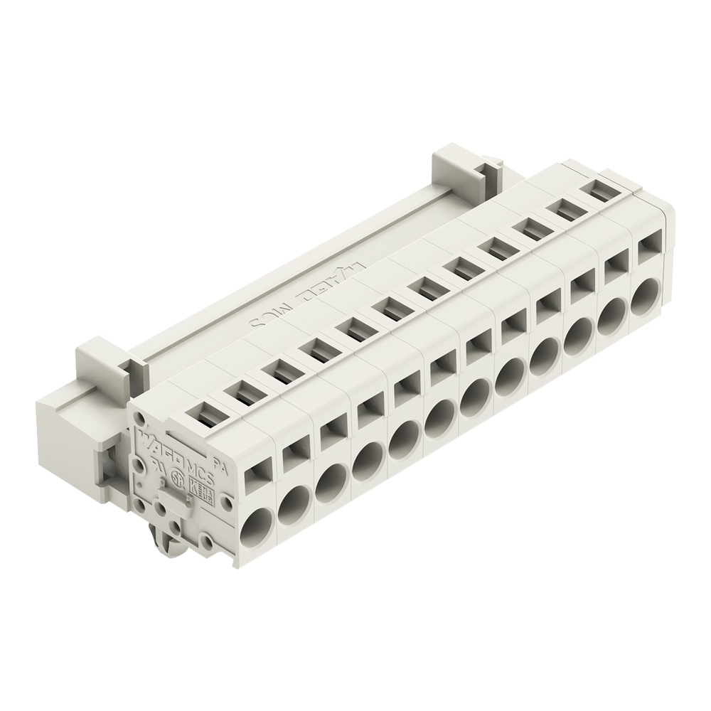 Wago Stiftleiste 721-612/018-000 Stiftleiste mit Rastfüßen 12-polig Rastermaß 5 mm/0.197 in 100 % fehlsteckgeschützt ohne voreilenden PE-Kontakt mit Montageadapter 209-137 auch auf TS 35 Blechdicke 0,6x1,2 mm Befestigungslöcher Ø 3,5 mm lichtgrau Wago Serie 721 EAN Nr. 4044918264419 Warengruppe WAGO Multistecksystem