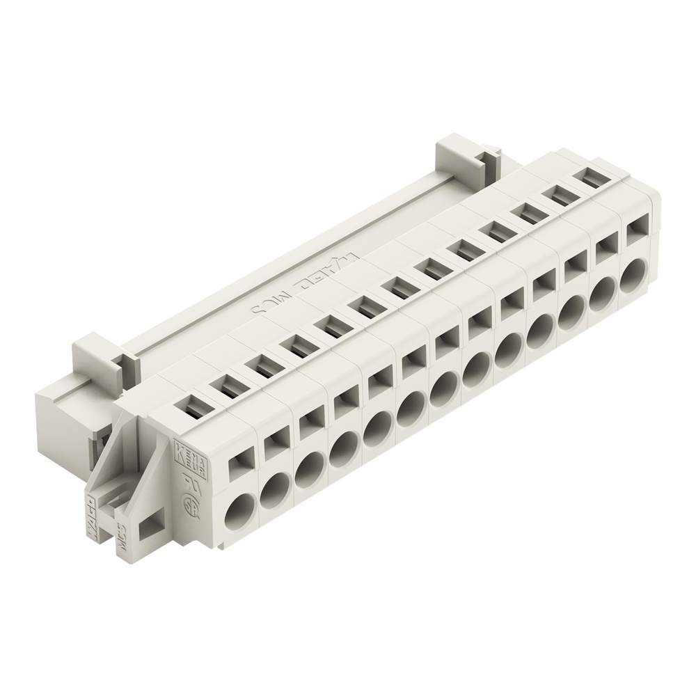 Wago Stiftleiste 721-613/019-000 Stiftleiste mit Befestigungsflanschen 13-polig Rastermaß 5 mm/0.197 in 100 % fehlsteckgeschützt ohne voreilenden PE-Kontakt für Schraub- o.ä. Befestigungsarten für vertikale oder horizontale Befestigung lichtgrau Wago Serie 721 EAN Nr. 4050821004585 Warengruppe WAGO Multistecksystem