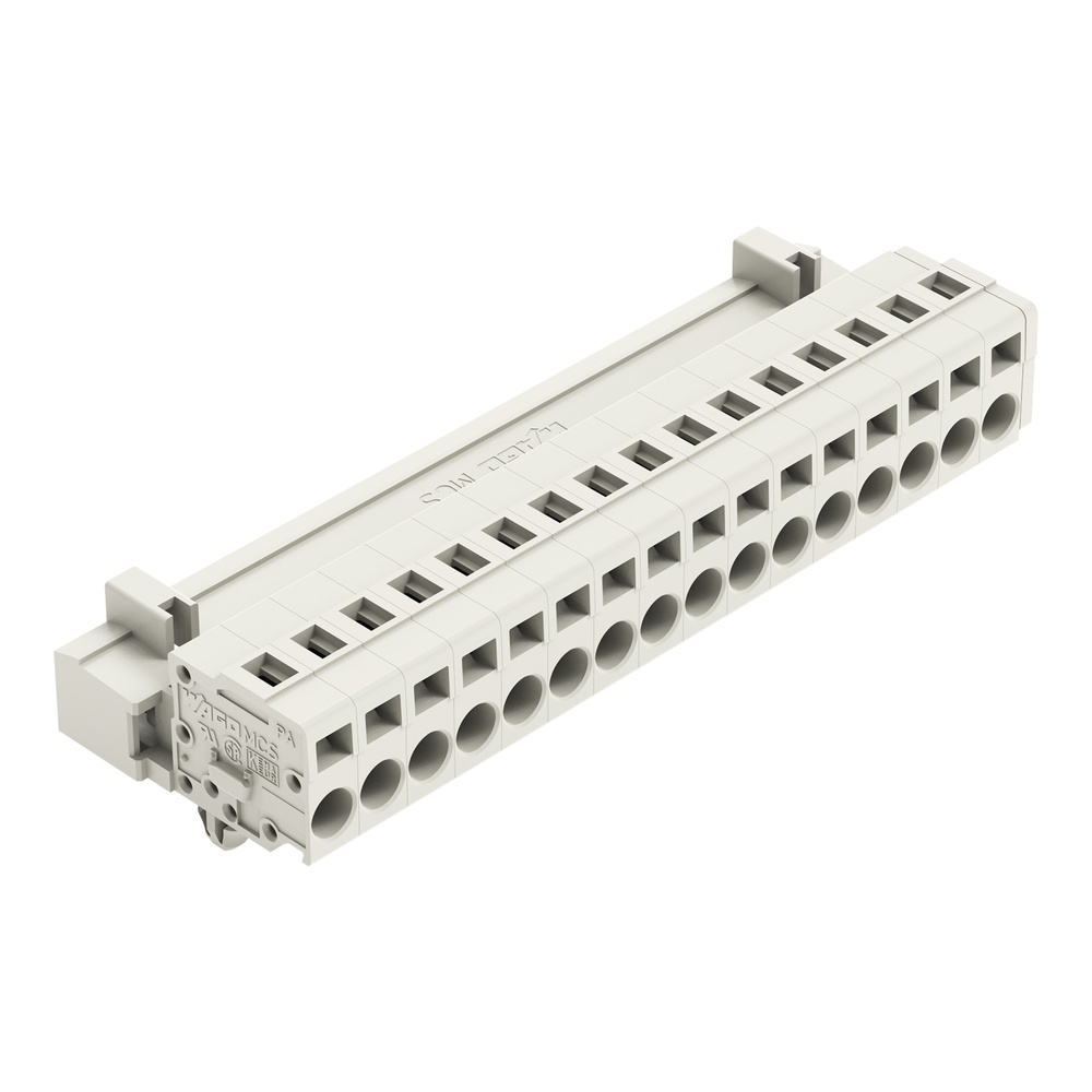 Wago Stiftleiste 721-616/018-000 Stiftleiste mit Rastfüßen 16-polig Rastermaß 5 mm/0.197 in 100 % fehlsteckgeschützt ohne voreilenden PE-Kontakt mit Montageadapter 209-137 auch auf TS 35 Blechdicke 0,6x1,2 mm Befestigungslöcher Ø 3,5 mm lichtgrau Wago Serie 721 EAN Nr. 4044918264778 Warengruppe WAGO Multistecksystem
