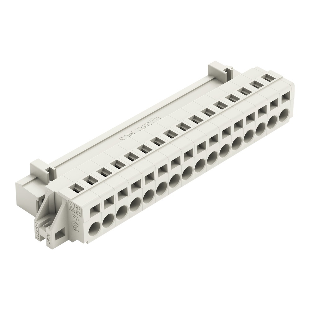 Wago Stiftleiste 721-616/019-000 Stiftleiste mit Befestigungsflanschen 16-polig Rastermaß 5 mm/0.197 in 100 % fehlsteckgeschützt ohne voreilenden PE-Kontakt für Schraub- o.ä. Befestigungsarten für vertikale oder horizontale Befestigung lichtgrau Wago Serie 721 EAN Nr. 4044918264792 Warengruppe WAGO Multistecksystem