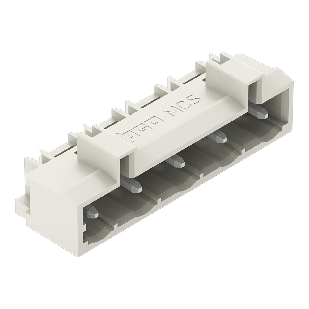 Wago Stiftleiste 721-865/001-000 Stiftleiste mit geraden Lötstiften 1,2x1,2 mm 5-polig Rastermaß 7,5 mm/0.295 in 100 % fehlsteckgeschützt ohne voreilenden PE-Kontakt mit Seitenwänden Steckrichtung parallel zur Leiterplatte lichtgrau Wago Serie 721 EAN Nr. 4044918933469 Warengruppe WAGO Multistecksystem