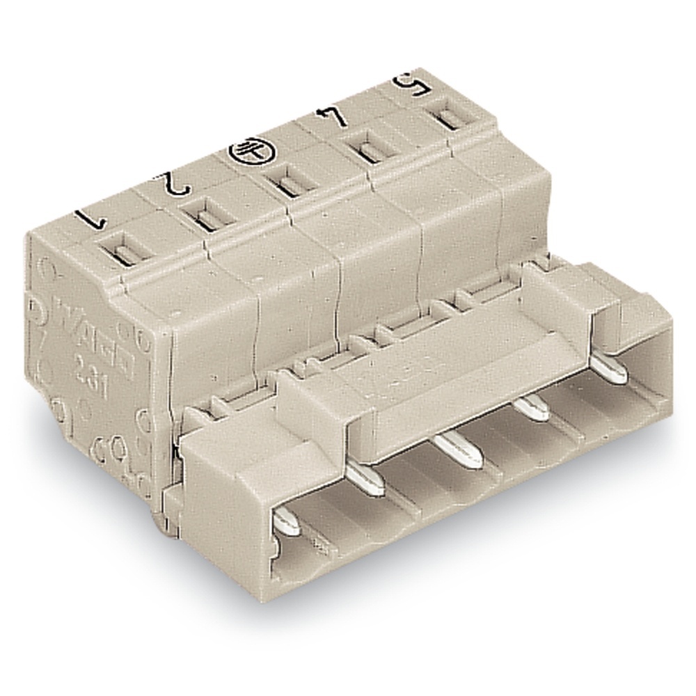 Wago Stiftleiste 723-603/018-042 Stiftleiste mit Rastfuß 3-polig Rastermaß 7,5 mm/0.295 in 100 % fehlsteckgeschützt mit voreilendem PE-Kontakt mit Montageadapter 209-137 auch auf TS 35 Blechdicke 0,6x1,2 mm Befestigungslöcher Ø 3,5 mm lichtgrau Wago Serie 723 EAN Nr. 4044918265225 Warengruppe WAGO Multistecksystem