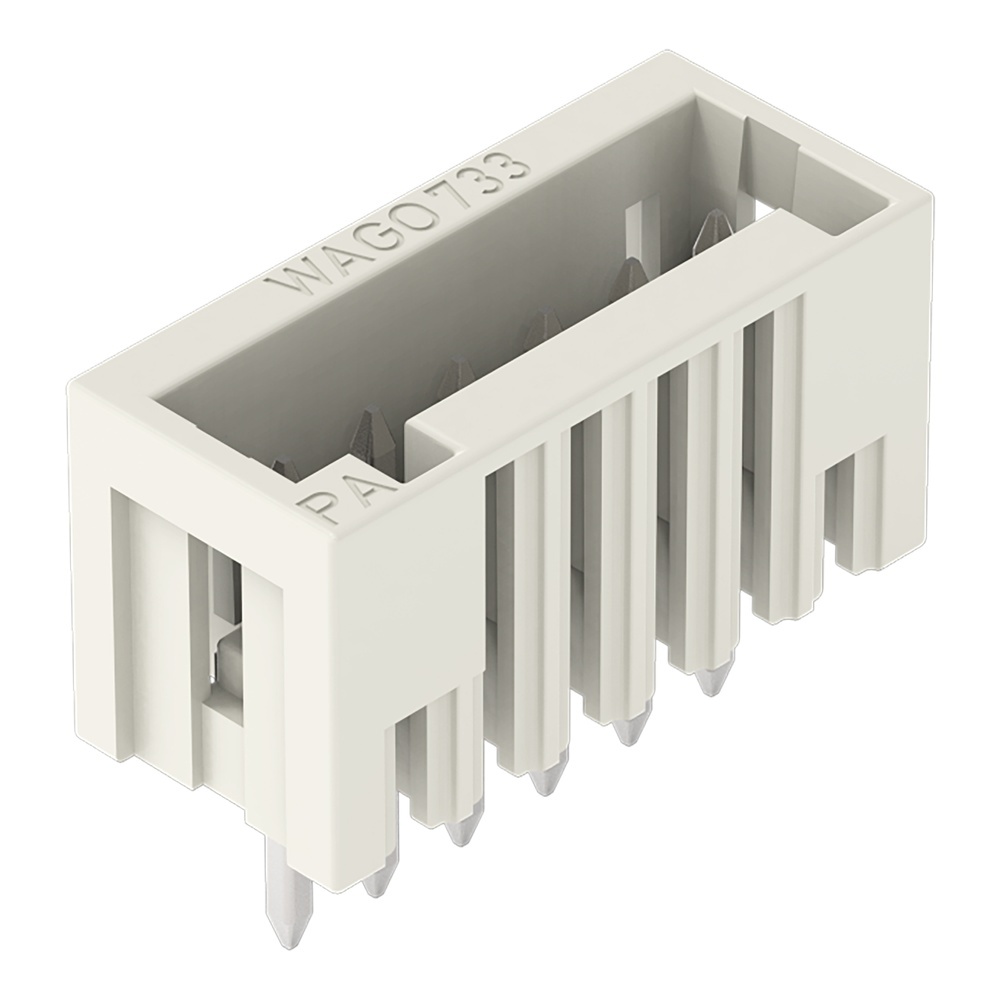Wago Stiftleiste 733-342 Stiftleiste mit geraden Lötstiften 12-polig Rastermaß 2,5 mm/0.098 in 100 % fehlsteckgeschützt Steckrichtung senkrecht zur Leiterplatte mit Seitenwänden lichtgrau Wago Serie 733 EAN Nr. 4050821035688 Warengruppe WAGO Multistecksystem