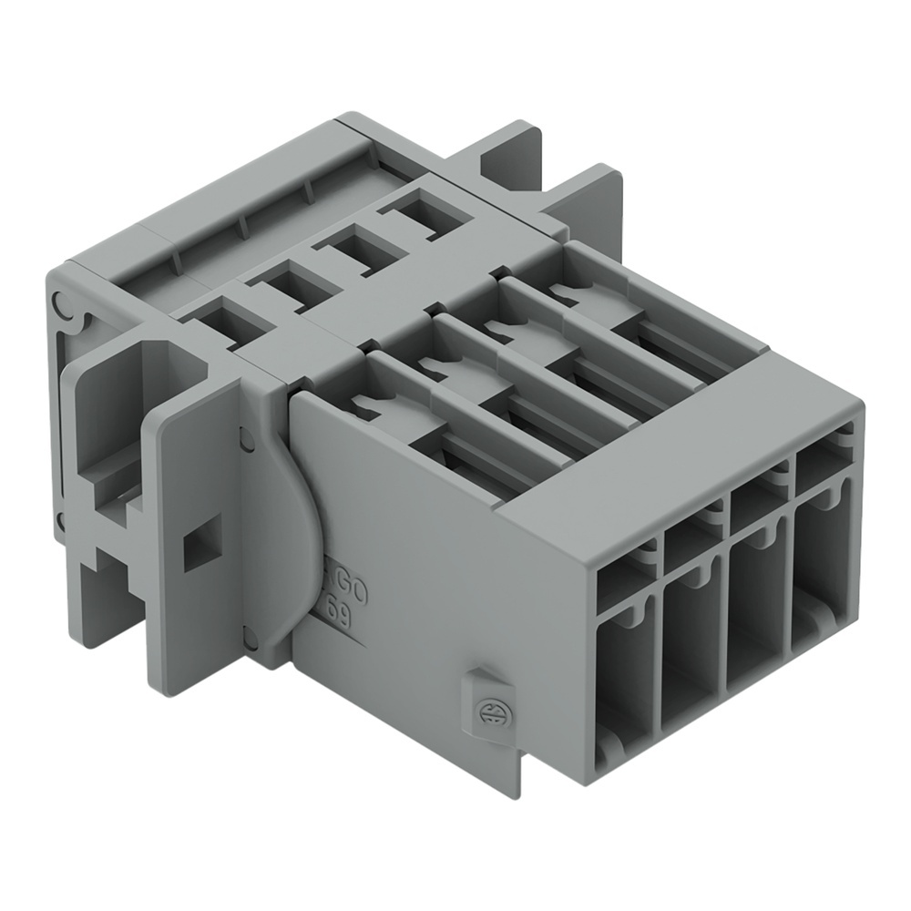 Wago Stiftleiste 769-604/002-000 Stiftleiste mit CAGE CLAMP -Anschluss und Befestigungsflanschen für Schraub- o.ä. Befestigungsarten für vertikale oder horizontale Befestigung Rastermaß 5 mm/0.197 in 4-polig grau Wago Serie 769 EAN Nr. 4044918520911 Warengruppe WAGOxCOM System