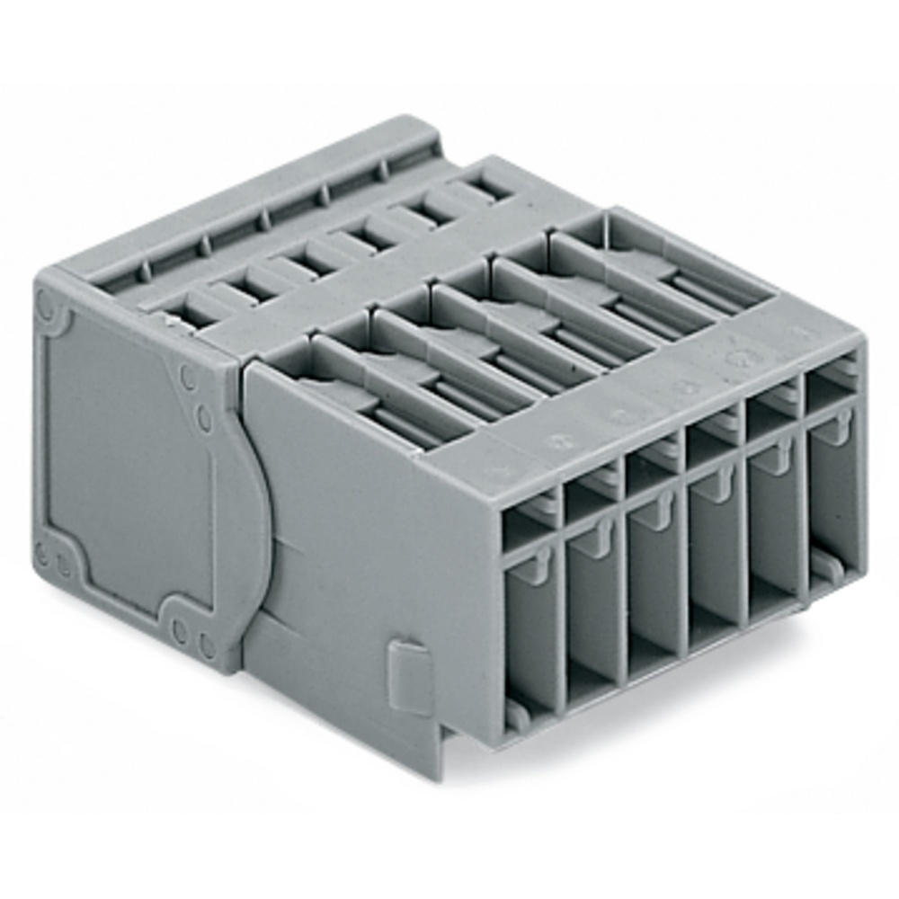 Wago Stiftleiste 769-606/001-000 Stiftleiste mit CAGE CLAMP -Anschluss und Rastfüßen für Blechdicke 0,6-1,2 mm Befestigungslöcher Ø 3,5 mm mit Montageadapter 209-137 auch auf TS 35 Rastermaß 5 mm/0.197 in 6-polig grau Hersteller WAGO Serie 769 EAN Nr. 4044918522045 Warengruppe WAGOxCOM System