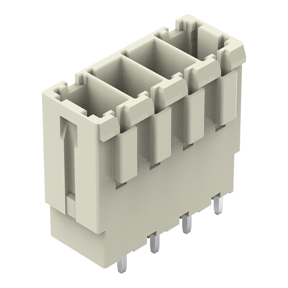 Wago Stiftleiste 831-3604 Stiftleiste mit geraden Lötstiften 4-polig Rastermaß 7,62 mm/0.3 in 100 % fehlsteckgeschützt 3xEinlötstift 1x1,2 mm Steckrichtung senkrecht zur Leiterplatte lichtgrau Wago Serie 831 EAN Nr. 4045454002121 Warengruppe WAGO Multistecksystem