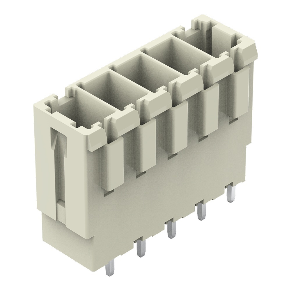 Wago Stiftleiste 831-3605 Stiftleiste mit geraden Lötstiften 5-polig Rastermaß 7,62 mm/0.3 in 100 % fehlsteckgeschützt 3xEinlötstift 1x1,2 mm Steckrichtung senkrecht zur Leiterplatte lichtgrau Wago Serie 831 EAN Nr. 4045454002138 Warengruppe WAGO Multistecksystem