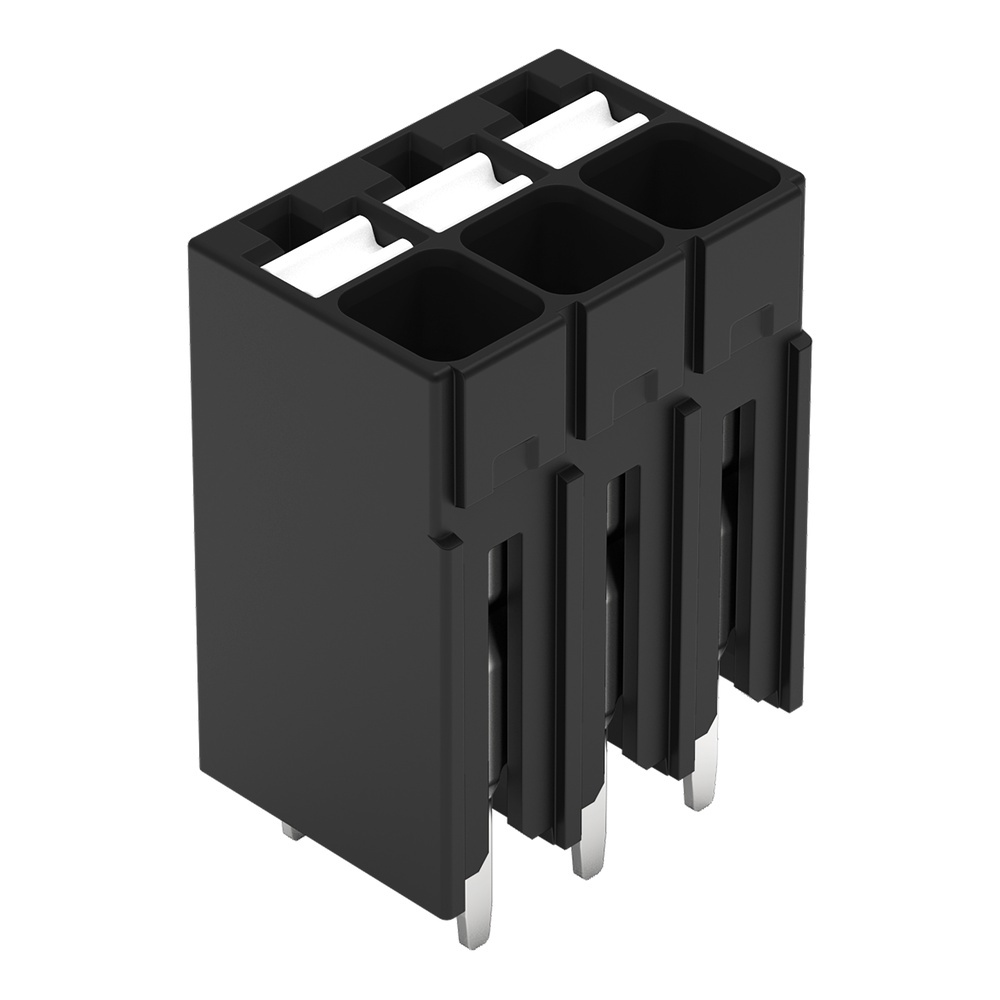 Wago THR Leiterplattenklemme 2086-1103/300-000/997-605 THR-Leiterplattenklemme,Drücker,1,5 mm²,schwarz THR-Leiterplattenklemme, Drücker, 1,5 mm², Rastermaß 3,5 mm, 3-polig, Push-in CAGE CLAMP®, im Gurt, Lötstiftlänge 1,5 mm, 1,50 mm², schwarz Ideal für den kompakten Geräteanschluss, Gehäuseausschnitte und beengte Platzverhältnisse Dank Push-in CAGE CLAMP® direktes Stecken eindrähtiger und feindrähtiger Leiter mit Aderendhülse Erhältlich als SMD- und THR-Variante Drückerbetätigung in Leiteranschlussrichtung Leiteranschluss und Steckrichtung horizontal oder vertikal zur Leiterplatte Wahlweise erhältlich mit Doppelpinning oder alternierendem Pinning, im Rastermaß 3,5 und 5 mm Hersteller Wago Nr. 2086-1103/300-000/997-605 EAN Nr. 4066966459593 Warengruppe WAGO Durchführungsklemmen