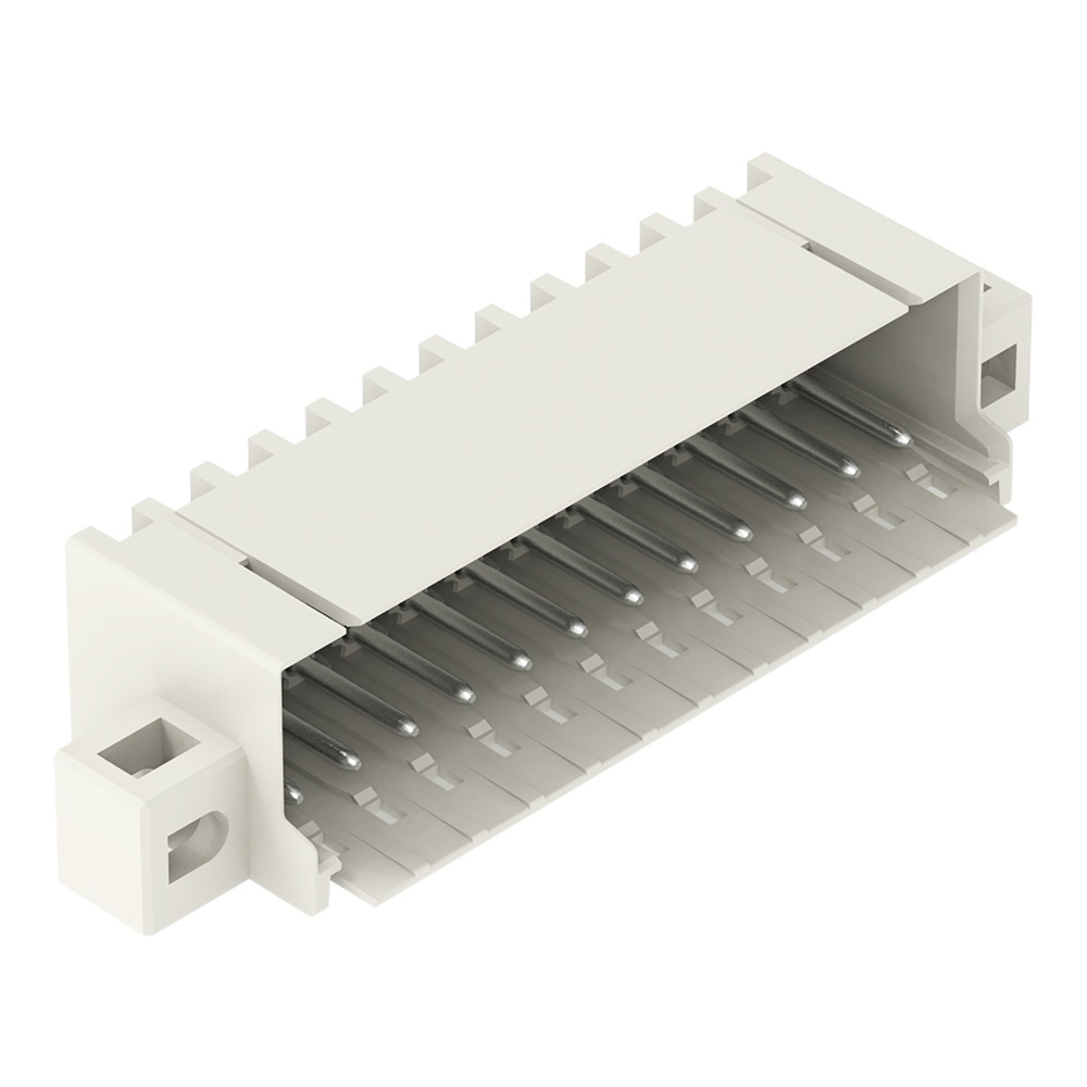 Wago THR Stiftleiste 2091-1432/205-000 THR-Stiftleiste, Lötstift Ø 1,0 mm, abgewinkelt, Befestigungflansch, Rastermaß 3,5 mm, 12-polig, lichtgrau Hersteller Wago Klemmen EAN Nr. 4066966288568 Warengruppe WAGO Multistecksystem