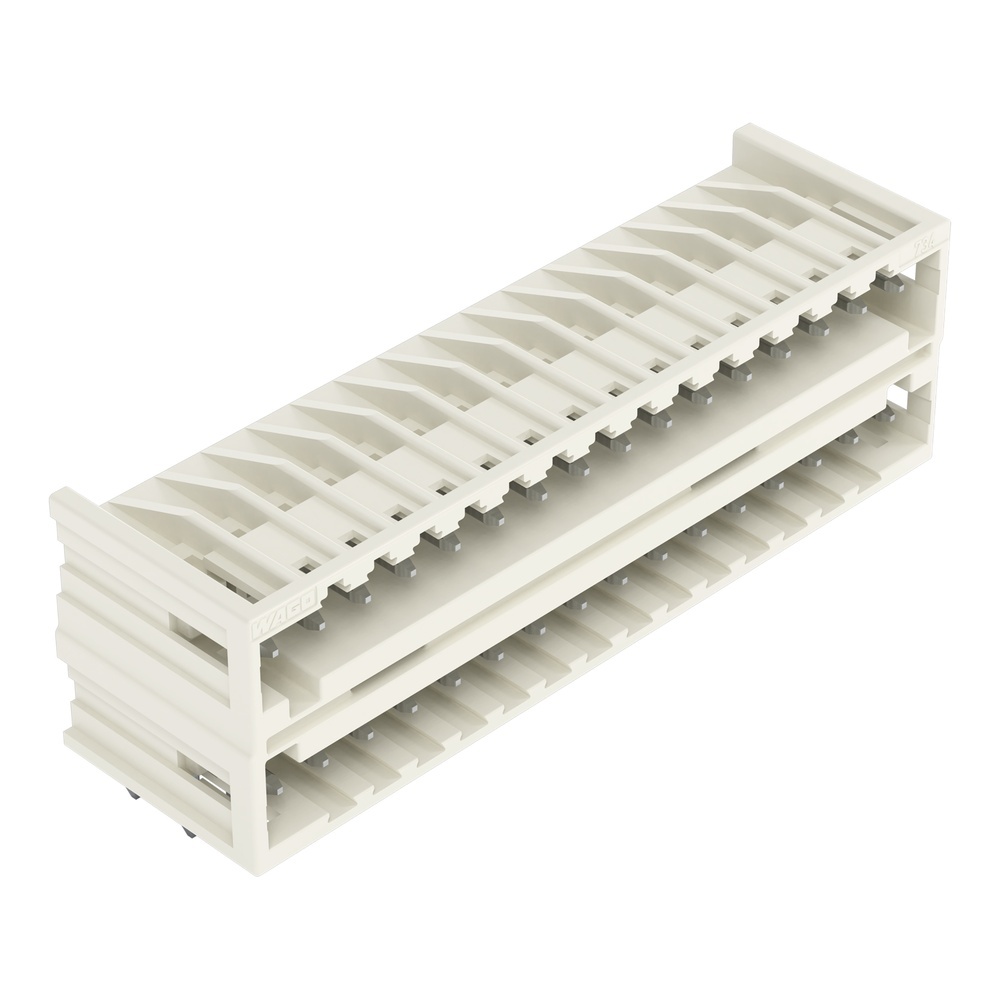 Wago THT Doppelstock Stiftleiste 734-1446 THT-Doppelstock-Stiftleiste,Lötstift 1,0x1,0 mm,abgewinkelt,lichtgrau THT-Doppelstock-Stiftleiste, Lötstift 1,0x1,0 mm, abgewinkelt, 100% fehlsteckgeschützt, Rastermaß 3,5 mm, 32-polig, lichtgrau Gerade und abgewinkelte Lötstifte für rechtwinklige und parallele Steckrichtung zur Leiterplatte 100 % fehlsteckgeschützt, nur gegenseitiges Stecken von polzahlgleichen Stift- und Federleisten möglich Kodierbar Hersteller Wago Nr. 734-1446 EAN Nr. 4066966469905 Warengruppe WAGO Multistecksystem