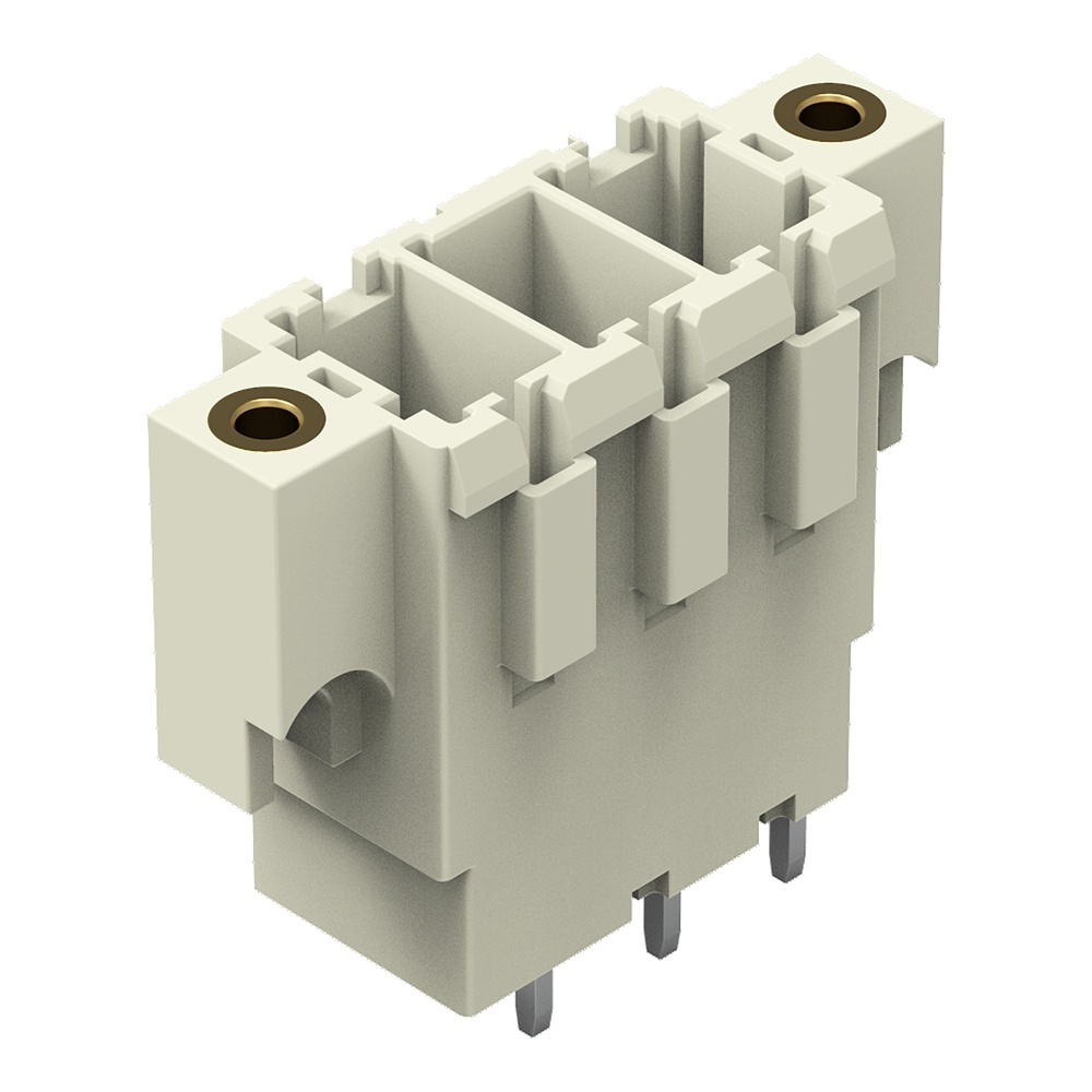 Wago THT Stiftleiste 831-3603/108-000 THT-Stiftleiste, Lötstift 1,0x1,2 mm, gerade, 100% fehlsteckgeschützt, Gewindeflansch, Rastermaß 7,62 mm, 3-polig, lichtgrau Hersteller Wago Klemmen EAN Nr. 4066966090802 Warengruppe WAGO Multistecksystem