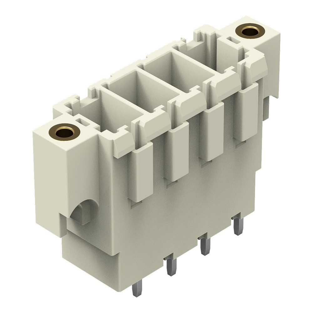 Wago THT Stiftleiste 831-3604/108-000 THT-Stiftleiste, Lötstift 1,0x1,2 mm, gerade, 100% fehlsteckgeschützt, Gewindeflansch, Rastermaß 7,62 mm, 4-polig, lichtgrau Hersteller Wago Klemmen EAN Nr. 4066966090918 Warengruppe WAGO Multistecksystem