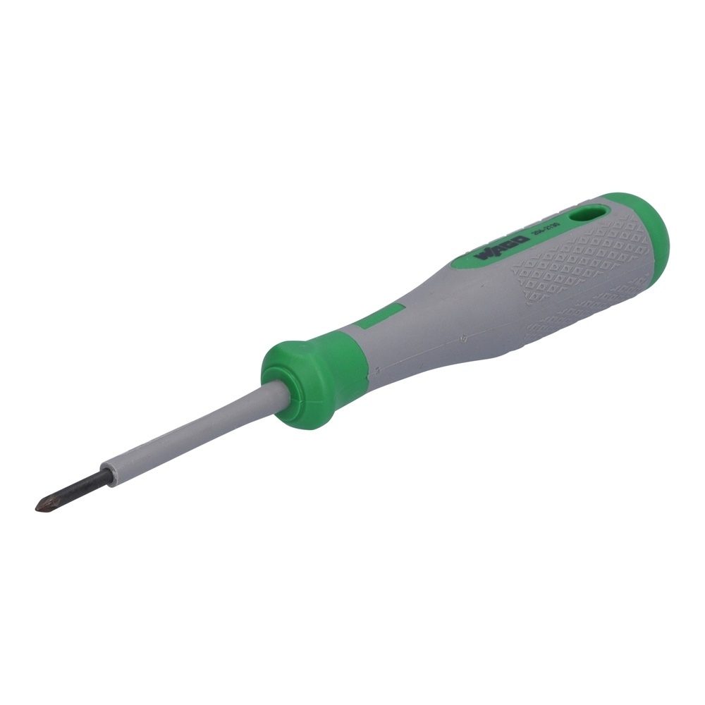 Wago VDE Kreuzschlitz Schraubendreher 206-2130 VDE-Kreuzschlitz-Schraubendreher,PZ0x60,VDE-geprüft,grün/grau VDE-Kreuzschlitz-Schraubendreher, PZ0x60, VDE-geprüft, 1000 V, isoliert, 2-Komponenten-Griff, Gr. 1 (100 mm), grün/grau Hersteller Wago Nr. 206-2130 EAN Nr. 4066966470901 Warengruppe WAGO Zubehör