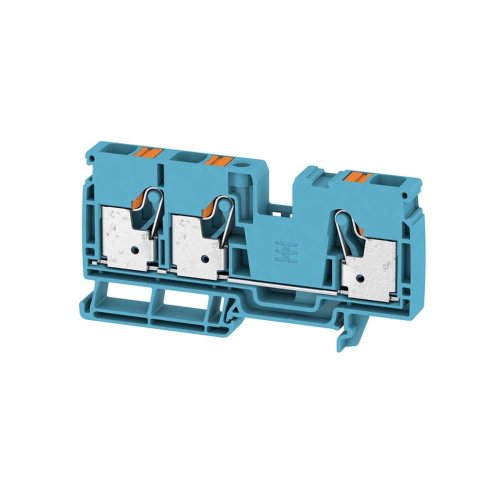 Weidmüller Durchgangs Reihenklemme 2490510000 Typ A3C 10 BL Durchgangs-Reihenklemme, PUSH IN, blau, 10 mm², 57 A, 1000 V, Anzahl Anschlüsse: 3 Reihenklemme zum Anschließen oder Verbinden von Leitern mit dauerhaft sicherem Kontakt. Gehärteter Stahl hält den mechanischen Kräften stand, Zinn-beschichtetes Kupfer sorgt für beste Leitfähigkeit. Hersteller Weidmüller Nr. 2490510000 Typ A3C 10 BL EAN Nr. 4050118817409 Warengruppe Weidmüller Reihenklemmen